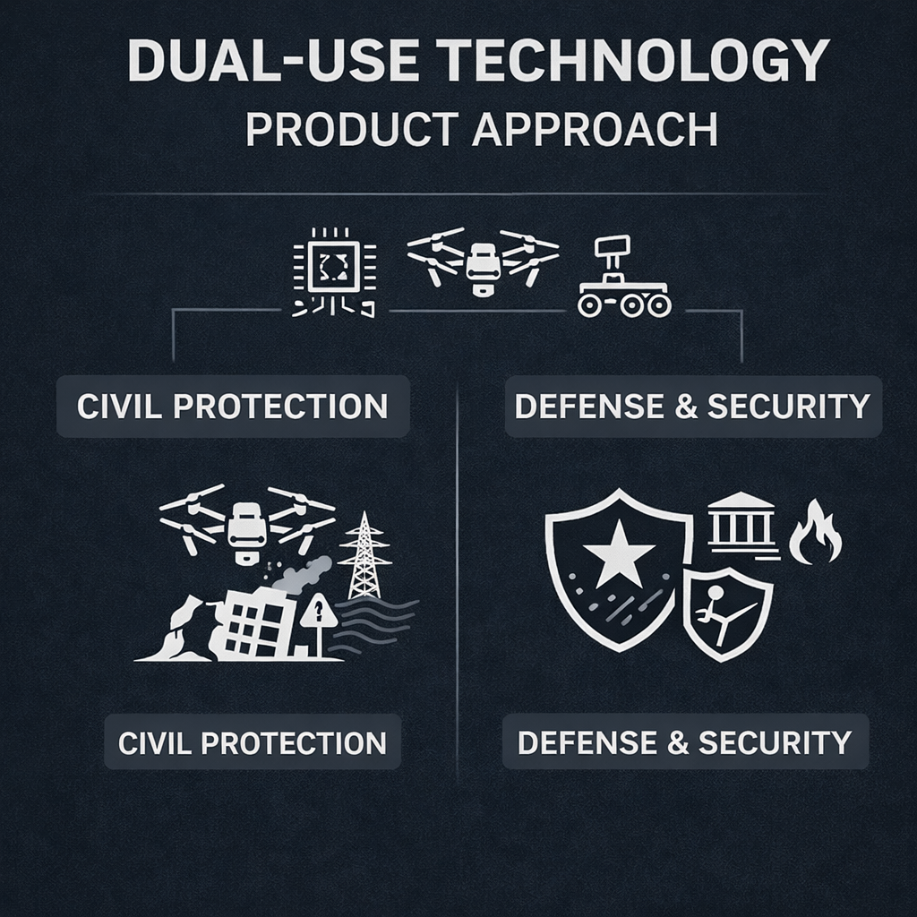 Our technology and product development strategy is based on dual-use technological architectures, allowing solutions to be deployed across both civil protection and defense environments.
